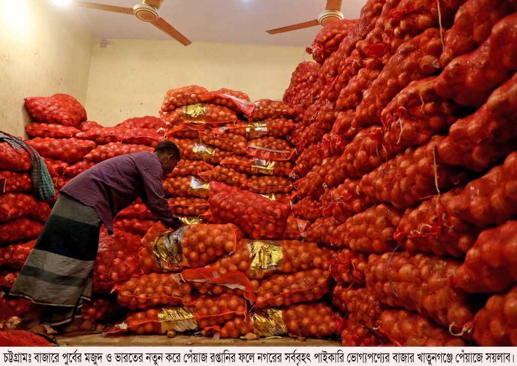 ভারতীয় পেঁয়াজ আসা বন্ধ হয়ে যাওয়ার পর মাথায় হাত পড়েছিল সাধারণ ভোক্তাদের। আর পেঁয়াজ আসা শুরু হওয়ার পর কপাল পুড়ছে ব্যবসায়ীদের। বিভিন্ন দেশ থেকে আমদানি করা পেঁয়াজের পাশাপাশি দেশীয় পেঁয়াজে ভরে আছে দেশের ভোগ্যপণ্যের অন্যতম বৃহৎ পাইকারি বাজার খাতুনগঞ্জের আড়তগুলো। সেগুলোরই ক্রেতা নেই। এর মধ্যে ভারত থেকে হঠাৎ করে পেঁয়াজ আসতে শুরু করায় দর পড়ে গেছে একেবারে। তিন থেকে চার দিনের মধ্যেই পণ্যটির দাম পাইকারিতে কমেছে ১০ থেকে ১৫ টাকা করে। ব্যবসায়ীরা বলছেন, কখনো কখনো তাদের আমদানি মূল্যেরও কম দামে ছেড়ে দিতে হচ্ছে পেঁয়াজ।