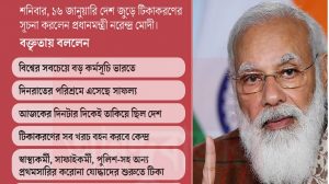 অতিমারির প্রকোপ কাটিয়ে উঠতে শনিবার (১৬ জানুয়ারি) দেশ জুড়ে টিকদান কর্মসূচির সূচনা করলেন প্রধানমন্ত্রী নরেন্দ্র মোদী। শনিবার সকালে ভিডিও বার্তায় এত কম সময়ের মধ্যে নোভেল করোনাভাইরাসের প্রতিষেধক আবিষ্কার করে নজির গড়ায় গবেষক এবং বিজ্ঞানীদের ধন্যবাদ জানান তিনি। তবে টিকাদান শুরু হলেও, সংক্রমণ থেকে বাঁচতে আগের মতোই সতর্কতা অবলম্বন করতে হবে বলে জানান তিনি।