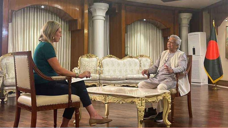 ব্রিটিশ সংবাদমাধ্যম স্কাই নিউজ়কে বুধবার একটি সাক্ষাৎকার দিয়েছেন ইউনূস। সেখানে তাঁর কাছে জানতে চাওয়া হয়, হাসিনার বিষয়ে ঢাকার অবস্থান কী? ইউনূস বলেন, ‘‘বিচারপ্রক্রিয়া শুরু হবে। শুধু ওঁর (হাসিনার) বিরুদ্ধেই নয়। ওঁর সঙ্গে আরও যাঁরা যাঁরা যুক্ত ছিলেন, ওঁর পরিবারের সদস্যেরা, ওঁর ঘনিষ্ঠেরা, সকলকেই বিচারপ্রক্রিয়ার মুখোমুখি হতে হবে।’’ ইউনূস জানিয়েছেন, বাংলাদেশে একাধিক অপরাধের জন্য হাসিনার বিরুদ্ধে ইতিমধ্যে দুটি গ্রেফতারি পরোয়ানা জারি করা হয়েছে। কিন্তু তাঁর সশরীরে উপস্থিতির জন্য বিচারপ্রক্রিয়া আটকে থাকবে না। তিনি বলেন, ‘‘হাসিনা বাংলাদেশে থাকুন বা না থাকুন, উনি ভারতে থাকা অবস্থাতেও আমরা বিচারপ্রক্রিয়া শুরু করে দিতে পারি।’’
